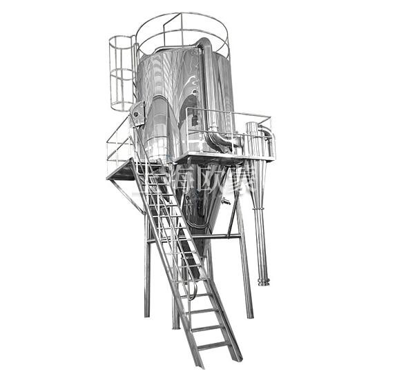 壓力式噴霧干燥制粒機是采用壓力式霧化器借助隔膜泵的壓力將溶液或漿狀的物料粒霧化成細(xì)微液滴,使表面積顯著增大,經(jīng)與熱風(fēng)進行充分熱交換得以快速干燥(十幾秒或幾十秒),從而得到粉體或細(xì)小粒產(chǎn)品的設(shè)備。